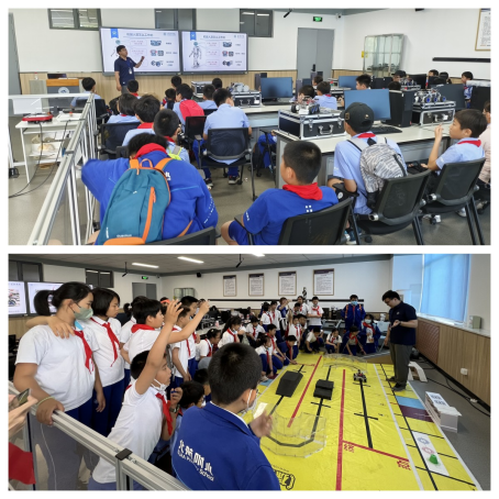 在机器人创新实验室,科普老师带领孩子们走进机器人的世界,把机器人形象化为人,生动的讲解了机器人的感知能力(人眼)、规划能力(人脑)、动作能力及协同能力(四肢),以及机器人的工作原理,通过全地形机器人行走演示,激发了小学生探索机器人的兴趣。