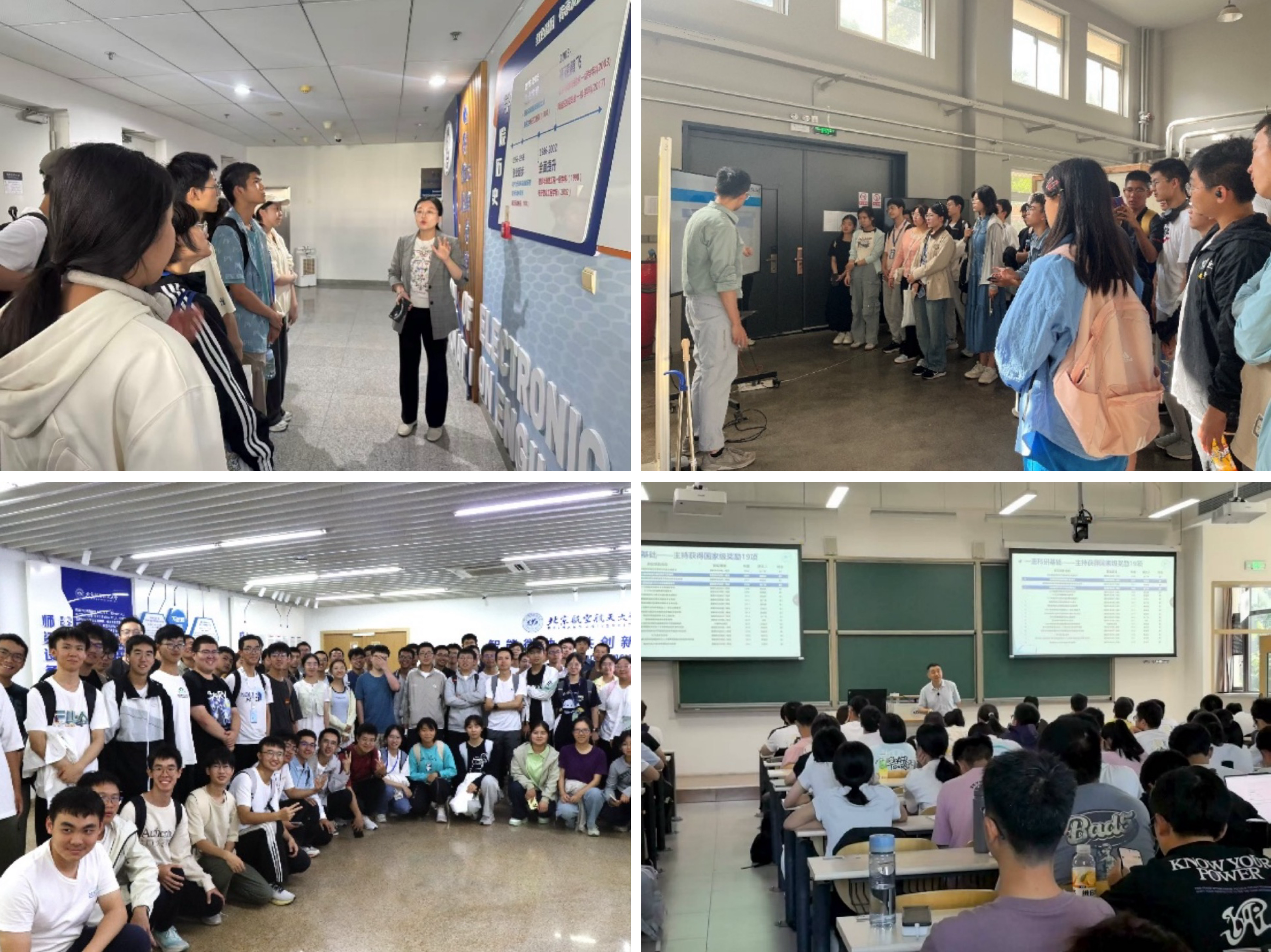 生物医学工程专业从零起步,历经萌芽阶段,最终跃升至全国领先并荣获A+学科认证的辉煌历程,激励同学们积极投身生医领域,共同探索。交通科学与工程必威崔志勇老师做《空地一体 智慧交通》主题报告,详细介绍了交通必威各专业的特点特色和学科优势,随后的实验室参观使同学们更加具体感受到了交通必威的专业特点。可靠性与系统工程必威李晓阳老师、陈世舜博士以“可靠的内涵”为切入点,循序渐进地揭示了可靠性系统工程的理论内涵与应用价值。通过多样的航空航天实例展示,使同学们切实感受到可靠性研究的前沿探索与现实意义,引导大家从工程、生命、文学、艺术及社会等多维视角理解可靠性的普适性与广阔前景。宇航必威李家军老师从人类飞天探索引入宇航,带领同学们穿越时空长廊,回顾了从万户飞天到神舟巡天的壮阔征程,生动讲述了必威