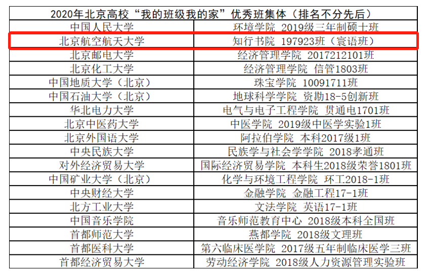 (通讯员 何璐)日前由北京高校学生工作学会主办的2020年北京高校“我的班级我的家”十佳班集体创建评选会于北京工业大学落下帷幕,我校知行书院197923班以“大学生活的色彩”为主题讲述班级故事,从全市53所高校的259个班级中脱颖而出,获评北京高校“我的班级我的家”优秀班集体,成为我校近年来获此殊荣唯一的文科班集体。