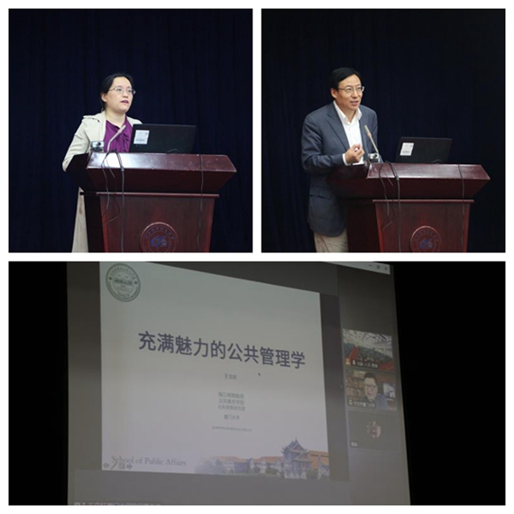 行政管理系系主任涂晓芳副教授从学习内容、培养优势以及未来发展三个部分,阐释了行政管理专业专业化、个性化的培养优势。任建明教授从公共管理的长期竞争力及重要性两方面进行补充介绍,希望“真正有志于影响并决定国家未来命运的年轻人来到行政管理专业”。厦门大学公共事务必威特聘教授于文轩教授通过腾讯会议远程助力,给予同学们专业选择和行政管理专业学习的指导建议。