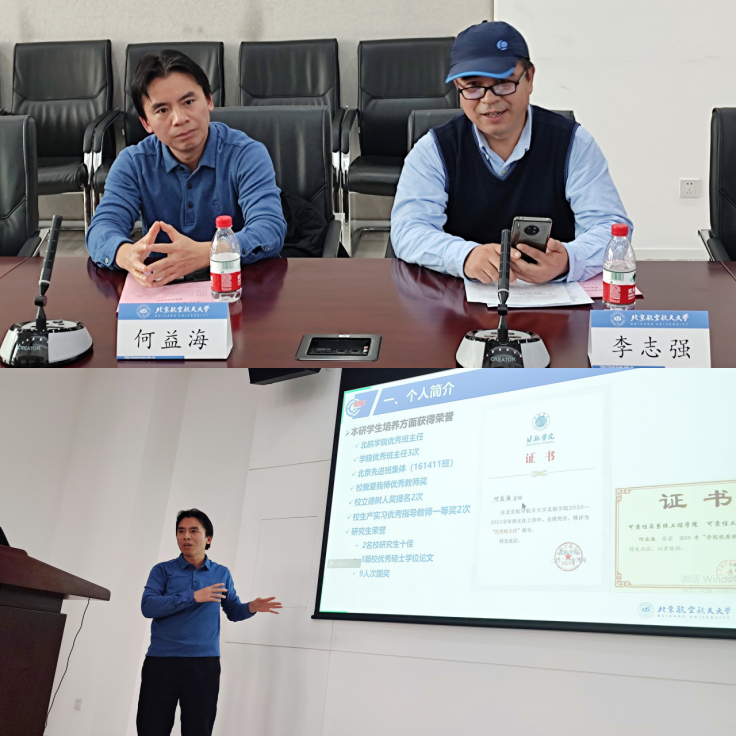 故事”主题,共计开展42次内涵丰富、形式多样的班级活动,切实增强了班级凝聚力。2020级优秀班主任代表何益海与李志强老师分享了各自的班主任工作经验。何益海老师表示,要把班主任工作与个人教学科研工作融合,抓住线上线下一切交流机会,增进与学生的熟悉和信任度。同时,重视学委作用,让班委牵头成立班级各类学习小组,帮扶学业困难学生;李志强老师结合自身带班班主任工作经历,分享了“严格”“包容”“服务”“休闲”八字要点:既要严格要求学业,又要以包容之心提供各类关心关爱服务支持,同时也要让学生注重身体锻炼,以休闲的心态适应大学生活。之后,其他与会人员围绕班级学风建设情况进行交流座谈,积极反馈,畅所欲言。
