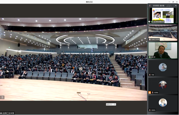 (通讯员 王涛 纪奕欣)11月24日下午,北京招生组邀请守锷书院学业总导师孟庆春教授为东城区汇文中学开展题为《上大学》的线上讲座,汇文中学师生300余人在中学报告厅参与讲座。