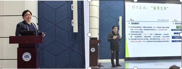 书院导师代表方杰、朱秉均分别分享了个人导学经验。方杰老师通过自身担任一年级学业导师、二三年级专属导师、四年级毕设导师之间的区别与联系,整合团队资源,建立起“导师-朋辈”指导体系,收获良好的导学效果。朱秉均老师首次担任书院本科生导师,他用“真实、融入、时间”三个词语,让参会导师们切实感受到了其导学的用情、用心。学业总导师陈志英总结了自己“XDP”导学中遇到的困难及解决的思路和方法,他强调要寓教于乐、因材施教、教学相长,尊重学生的个性和思想,引导学生热爱生活、发掘兴趣,选择适合自己的专业。