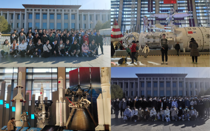 实践活动中,学生集体前往中国国家博物馆参观学习,重点参观学习了“逐梦寰宇问苍穹——中国载人航天工程30年成就展”。展览分为领导关怀、光辉历程、辉煌成就、发展展望四个板块,同学们参观了空间站组合体模型,长征系列运载火箭、新一代载人运载火箭等模型,并进入舱内参观天和核心舱模型。通过此次参观,同学们进一步了解了载人航天精神和文化、航天员训练与在轨工作活动情况等,并深受激励,纷纷表示要努力成为具有航空航天特色的信息类人才,为中国空天事业创造新的历史。