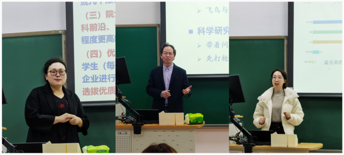 会上,丁丁院长对导师和班主任过去一学期积极参与书院导师制及班级建设工作表示感谢,强调加强导师制教育、班级建设有助于进一步构建全员全过程全方位育人体系。丁丁对《专业选择前期调研问卷结果》展开详细解读,就信息大类专业认知宣传的相关安排进行了说明,希望导师、班主任们能够指导学生平稳度过专业选择的关键时期。
