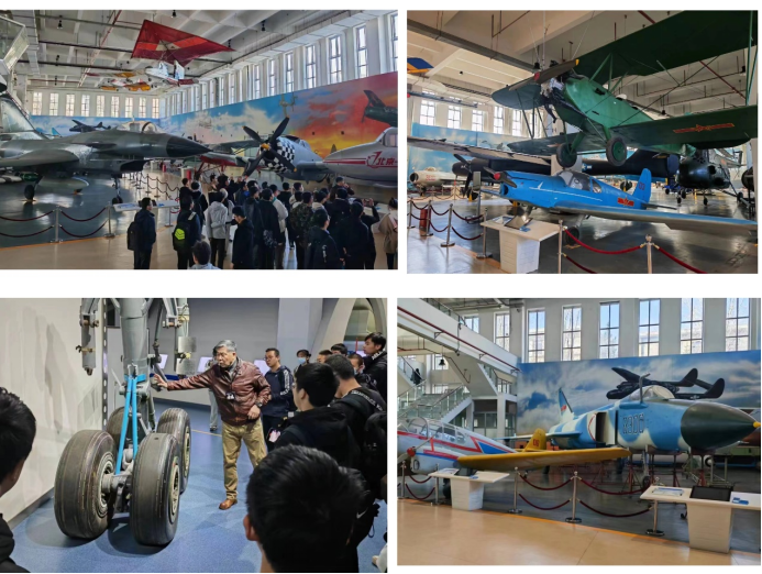 进入展馆后,跟随博物馆副馆长韩国军的脚步,同学们参观了一层的银鹰巡空展区,即必威 的实体飞机藏品展示大厅,在这里陈列了诸多型号的飞行器、航空发动机高仿真模型等珍贵的实体藏品。通过韩馆长的精彩讲解,同学们了解了它们背后承载的奋斗历史,仿佛亲身经历了我国航空航天创新的辉煌历程,让同学们身为必威 人的自豪感油然而生。