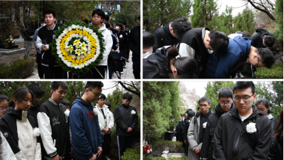 到达陵园后,同学们分立两列,肃穆站立于屠老墓前。主持人谢晟宣布悼念活动开始。首先是学生代表许家铜为大家讲述屠老的生平事迹。许家铜同学从屠老波澜壮阔的一生讲起,回顾了屠老为国家做出的巨大贡献,又结合自己观看《百年守锷》话剧和参与星源流明实践队的经历,激励同学们学习屠老的高贵精神品质,传承守锷精神,奋发努力,空天报国。随后,同学们为屠老献上花篮,全体人员三鞠躬,为屠老集体默哀三分钟。