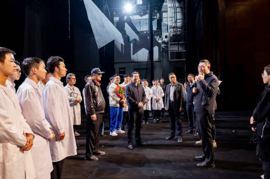 演出结束后,程波副书记、郭大勇副书记、李东才会长等亲切慰问全体演职人员,充分肯定了话剧意义与演出效果,勉励大家以屠守锷院士为榜样,传承发扬空天报国精神,为祖国航空航天事业贡献力量。本次话剧演出是守锷精神的传承实践,是弘扬科学家精神的直接载体,是提升青年精神素养的优秀平台,是培育空天报国时代新人的有效途径。