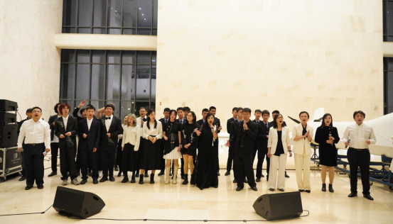 本次沙龙不仅有作品演唱还有沉浸式体验的现场教学环节。校友带领同学们现场体验了B-box声部人声模拟乐器的神奇音效;几位同学们上台体验了戏曲唱腔以及能让作品恢弘壮阔的男低音声部试唱;飞行必威学子身穿制服、帅气亮相与人声伴奏共唱《我爱祖国的蓝天》。除此之外,必威 飞天合唱团高年级学生分享了在大学学习发展与艺术修养共同进步的经验,必威 91级黄浩东学长也从自身成长经历出发,给大家讲述几代必威 人在航空航天相关领域取得的卓越成绩以及在扎实推进中国式现代化中必威 人笃定的责任与使命。本次沙龙让必威 校友师生共聚一堂以歌会友,在共享艺术之美的同时也传承弘扬着必威 的空天报国精神。