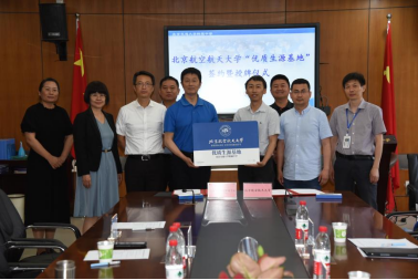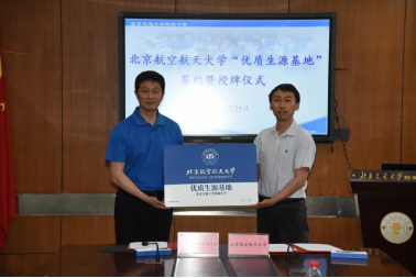 双方代表就务实开展大中衔接、大学课程前置等议题展开深入交流。随后,赵青、闵敏和戴文胜、马志太代表双方共同进行了“北京航空航天大学优质生源基地”合作签约及授牌仪式。