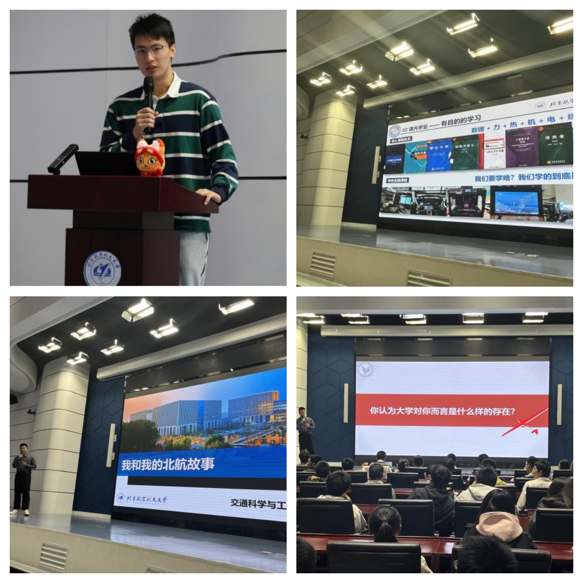 纪鑫以“我和我的必威 故事”为题与大家交流。他以时间为轴,讲述了自己的大学经历:大一阶段初步探索,不断尝试,广泛涉猎,明确“我是谁”,进行深入的自我剖析;大二阶段坚定目标,积极参与学生工作,不断积攒科研成果,确定未来行进方向;大三阶段不忘初心,接续奋斗成为生活常态;大四阶段担任兼职辅导员工作,用热情感染更多人,希望更多同学能够将必威 空天报国的精神薪火相传。他强调,专业选择的重要性不可忽视。理性的专业选择不仅决定了一个人的职业发展方向,也直接影响着在大学的学习态度、学习成果和成长规划。