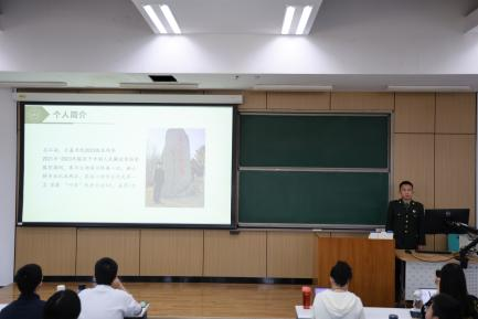 优秀退役复学大学生代表吕江涵、常堃分别分享了参军入伍经历和感受。吕江涵以“青春热血踏军旅,铿锵誓言铸军魂”为主题从个人简介、部队概况、立志报国和参军收获四个方面展现了自己的参军历程,鼓励大家积极参军为国防建设贡献青春力量。常堃结合个人从军经历和成长感悟,分享了自己的军旅故事,展示军营魅力,激发同学们献身国防的责任感和使命感。