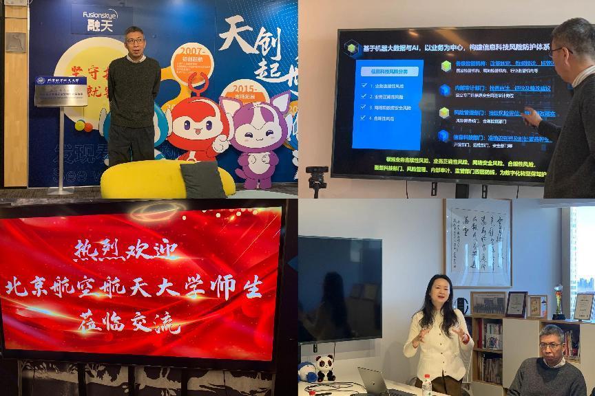 在交流实践活动中,实践队对北京华青融天进行了实地调研。华青融天成立于2007年,以国家战略发展为导向,在大数据与AI技术方面深入挖掘、有所成就,荣获北京市专精特新小巨人企业,与北京航空航天大学共建人工智能实验室、数据与智能安全实验室,积极为国家科技创新道路贡献力量。