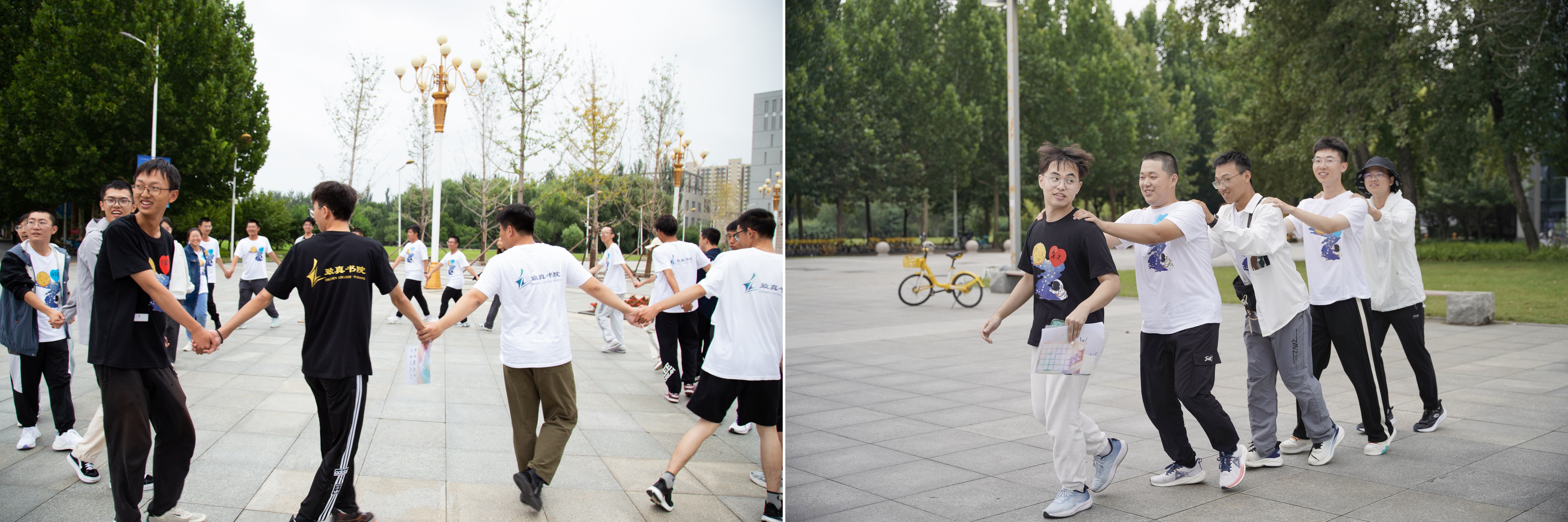 活动采用分组合作方式进行,每个梦拓带领自己的小组参与活动,十个小组构成一个大组,共七大组。首先在梦拓与导员的组织下,同学们进行了简短而有趣的自我介绍,在活跃氛围的同时也逐渐熟悉了彼此。随后新生们在梦拓的协助与辅导员的引导下,通过完成各种团队挑战和合作任务,建立同学们之间的友谊和信任。这些丰富多样的任务在带来欢声笑语的同时,也在竞技中助力成长,在合作中培养品格,调动初入大学的新生们未来参与学术和社交活动的积极性,使他们充满对未来的信心与前进的动力。当新生融冰活动落下帷幕时,每个人都感到意犹未尽,彼此之间的距离在活动中不知不觉地拉近了。各大组在相机前留下了珍贵的合影,定格下这一难忘的时刻。