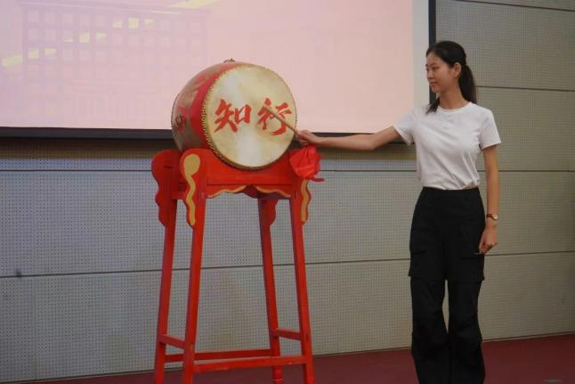 “击鼓明志”环节,法必威党委副书记邹沛东老师介绍“击鼓明志”的含义,2023级老生代表冯雪纯同学击鼓三次,以此礼祝愿新同学们能够在鼓声的引领中勤学苦读、志存高远、勇毅前行。