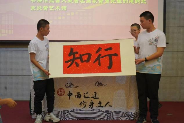 “描红开笔”环节,新生代表李光铖书写“知行”二字,人文与社会科学高等研究院党委书记于金龙老师解读“知行”含义,勉励同学们在学习中能躬行知行合一之训,以知促行,以行增知。