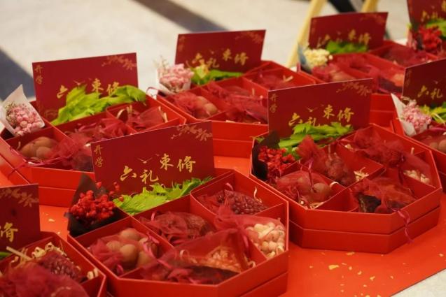 新生代表为导师送上由芹菜、莲子、红豆、红枣、桂圆、肉干组成的“六礼束脩”之礼,由知行书院学业总导师、人文社会科学必威(公共管理必威)沈映春教授介绍“六礼束脩”的典故。“六礼束脩”为古代拜师之礼,由弟子赠与老师六项礼品以示敬意,六种礼物分别寓意着“业精于勤、苦心教育、宏图大展、早日高中、功德圆满、感谢师恩”之意,期待学生们未来能够潜心学习,不负师恩,以师长教诲约束自己的一言一行。