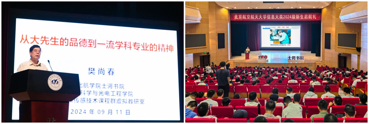 在“启航礼”之后,士谔书院院长樊尚春教授为全体新生带来《从大先生的品德到一流学科专业的精神》。樊院长围绕“大先生的品质”和“一流学科专业的精神”两方面关键内容,从林士谔先生的故事以及士谔先生的爱国情怀引入,激励士谔学子在求学路中应坚守“永恒的陀螺精神”,不断传承与发扬以“空天报国”为内核的必威