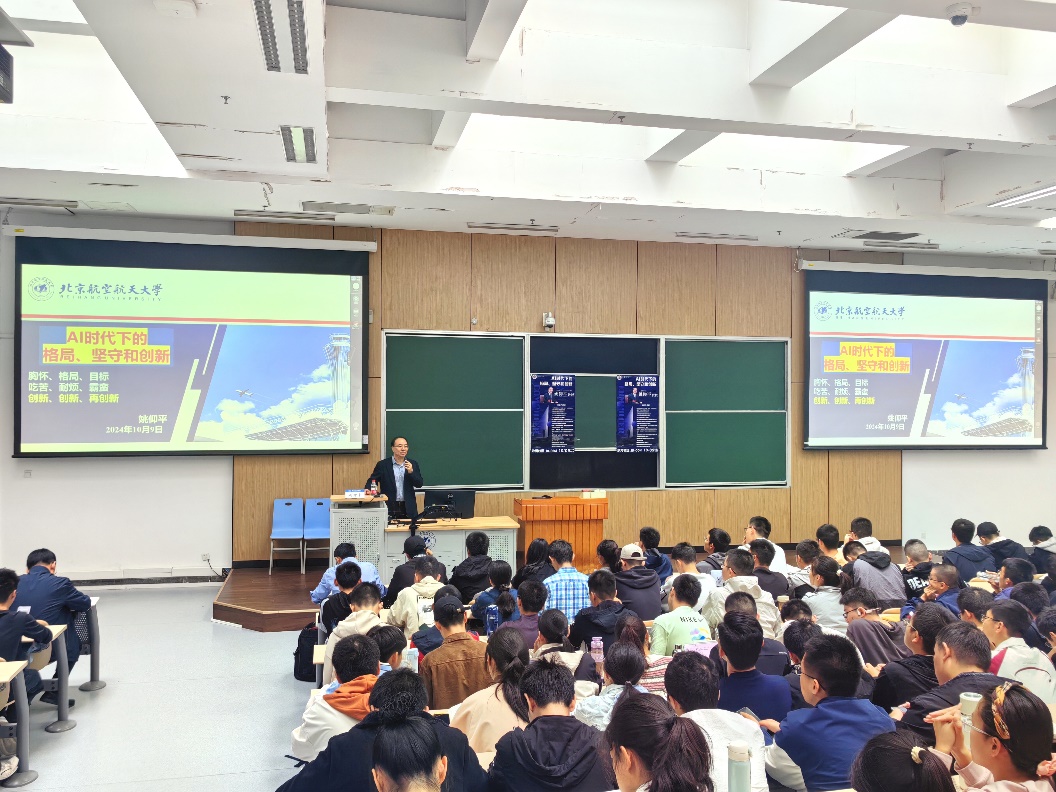 (通讯员 谢贝贝)10月9日下午,士嘉书院院长姚仰平教授在沙河校区J0-004为书院2024级新生做新学期“士嘉大讲堂”首场报告——“AI时代下的格局、坚守和创新”。2024级全体学生和书院执行团队成员参加了学习。