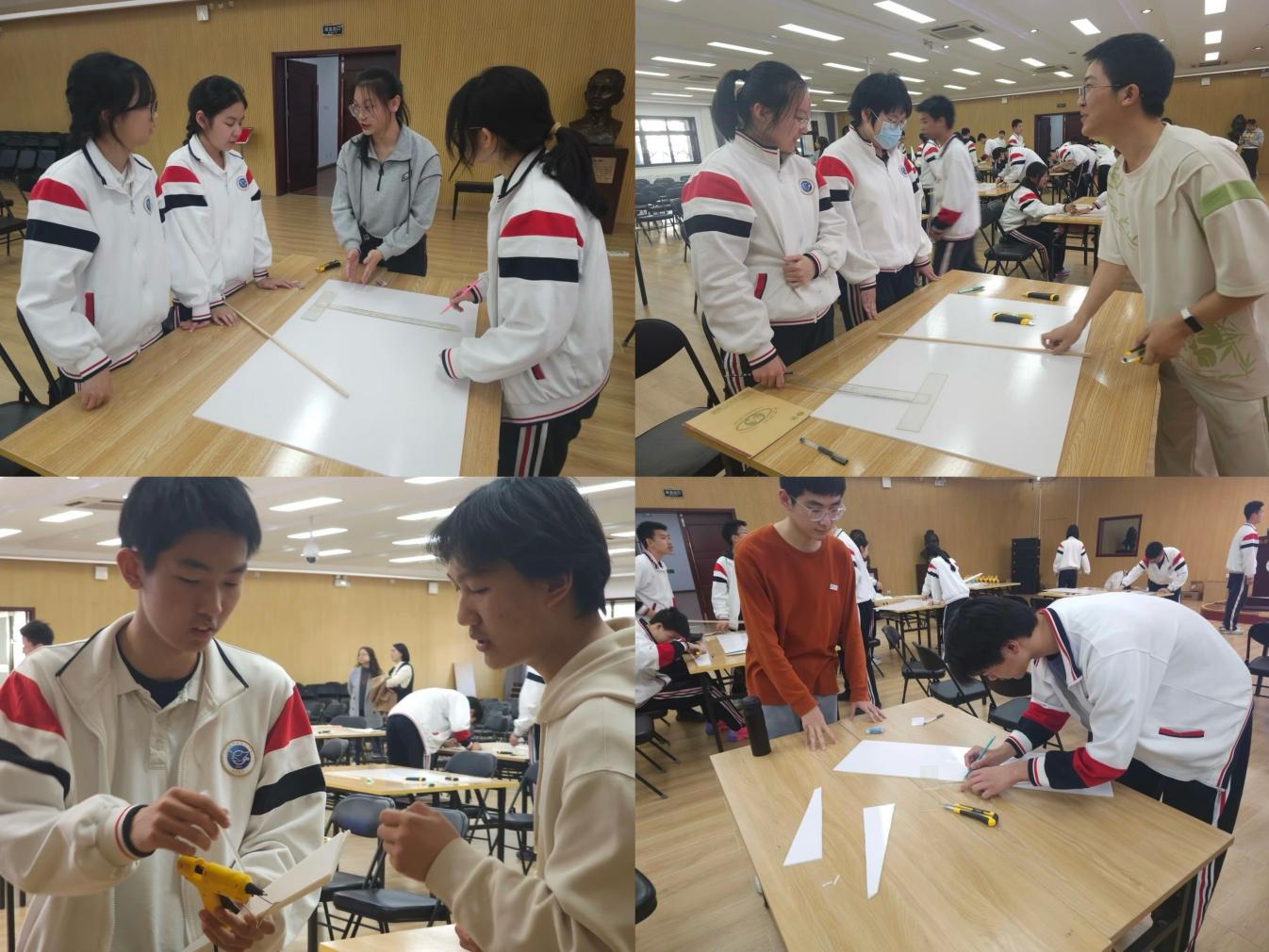 随后,在实践环节中,宣讲团成员指导各位同学完成滑翔机设计、原料切割与整机组装的全流程,在滑翔机的制作中加深了同学们对于航空飞行原理的认识,更锻炼了其动手实践的能力。当十余架自制滑翔机同时腾空,承载着青少年科技梦想的滑翔机群划出优美弧线,托举空天报国的梦想顺利启航。
