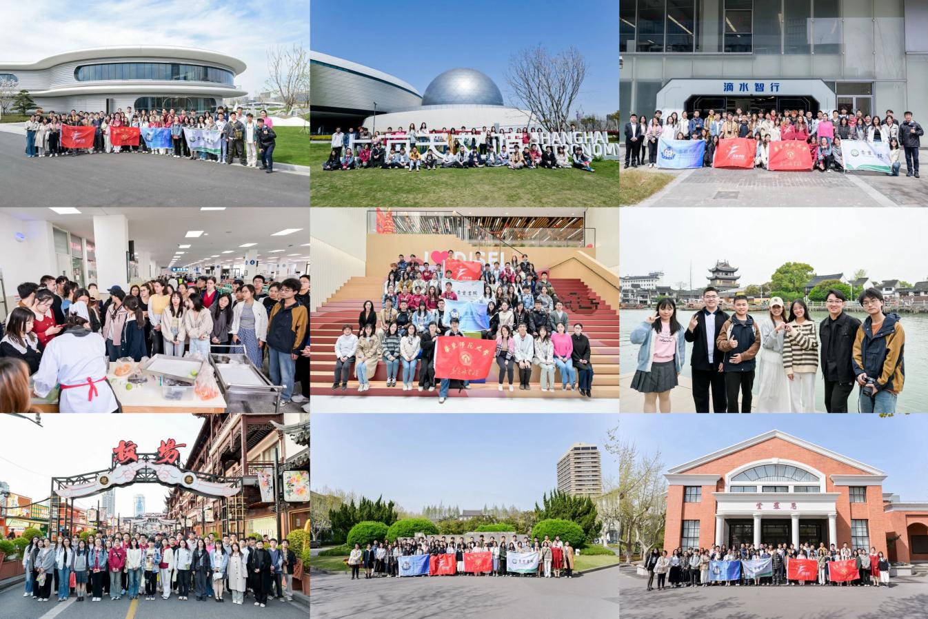 活动期间,师生们参访临港新片区规划展示馆、滴水智行高新企业及华师大滴水湖国际软件必威,感受科技为城市发展注入的澎湃动力;走进上海天文馆,仰望星空追问宇宙奥秘;漫步豫园、城隍庙商圈,夜游外滩,触摸上海历史与现代交织的文化脉络。在华师大普陀校区,同学们对话丽娃河畔的沪上文化,在校史馆感悟百年学府的厚重积淀;清明时节,四校学子与留学生共包青团,体验传统与现代的温情碰撞;朱家角古镇的巷弄与古建,更让千年江南水乡的韵味跃然眼前。