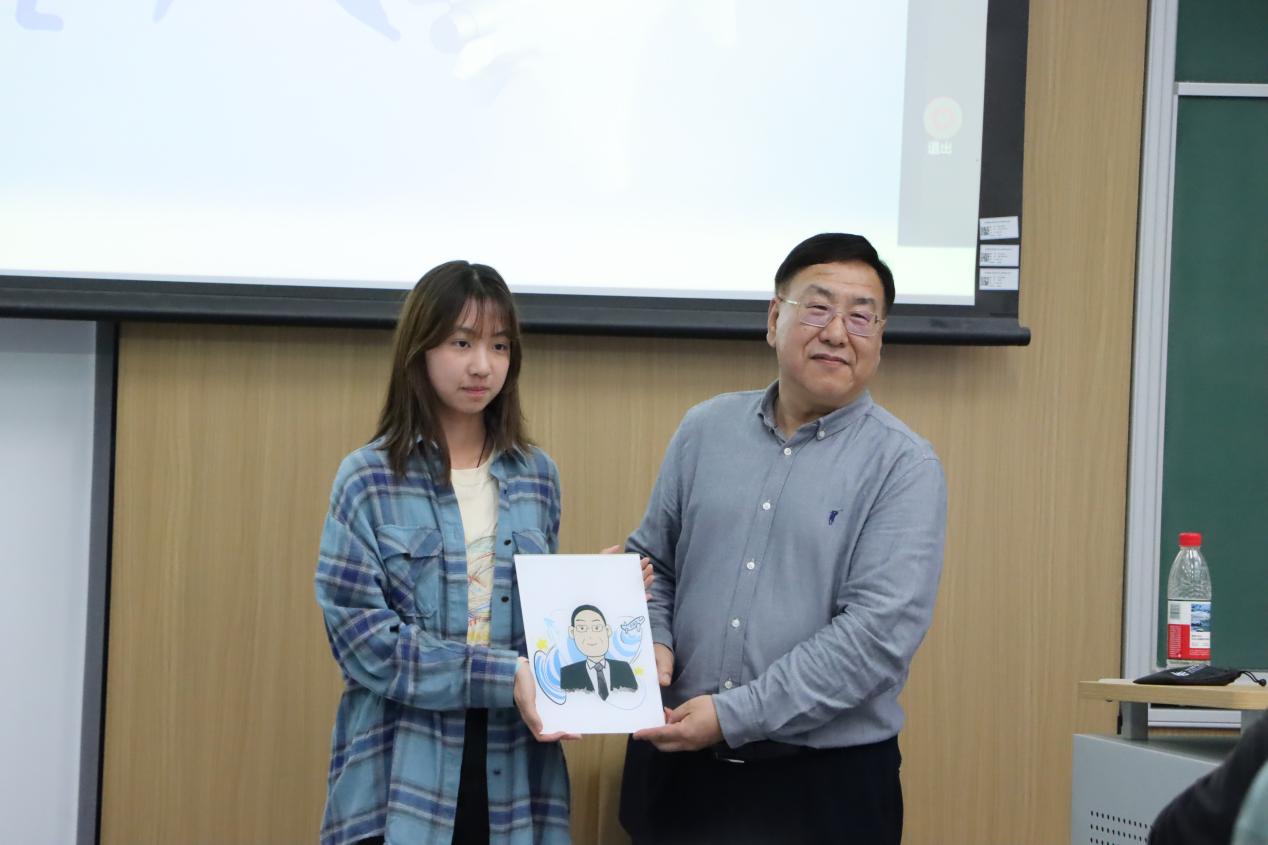 讲座之后,同学们就选择人生道路、锚定航空领域等方面踊跃提问,李耀国耐心解答。同学为李总师送上手绘画像。
