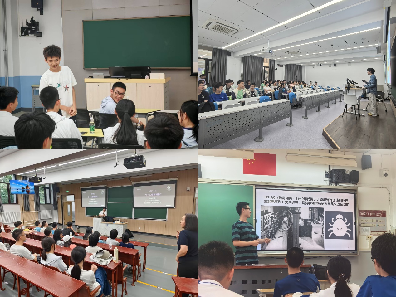 6月9日,北京市十一学校高一年级学生来访。在参观必威 航空航天博物馆后,中学生们分组在必威 校内主楼教室参与了“士说纷纭”实践队精心准备的授课;活动围绕“Python趣味编程”“航空发展史”“贝叶斯公式与信息推断”等主题展开。6月10日,“士说纷纭”项目组同学继续向北京市十一学校高二年级学生传递科普知识,中学生们根据自己的兴趣在“浅谈信息发展史”“密码科学”“数据与大数据”等主题中自由选择参加交流。