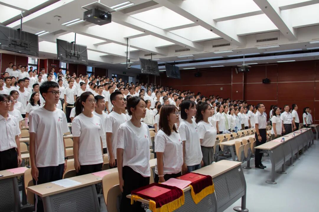 伴随着全体师生齐唱中华人民共和国国歌,庄严的旋律响彻会场,冯如书院2025级新生开学仪式正式拉开帷幕。