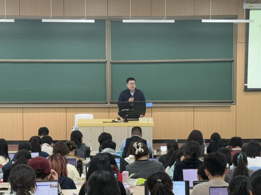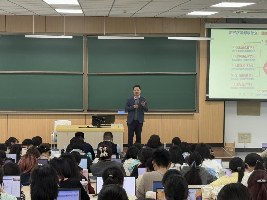 经济系主任何平林以《学习经济学专业的美好前景》为题,围绕“经济学是什么、学什么、学好能做什么”三个维度展开讲解。他强调,经济学作为一门研究财富的科学,能够引导学生经历“认知启蒙-经邦济世-修身达人”的知识成长路径。何老师还通过优秀校友的典型案例,展示了经济学专业发展的多样性与可能性。