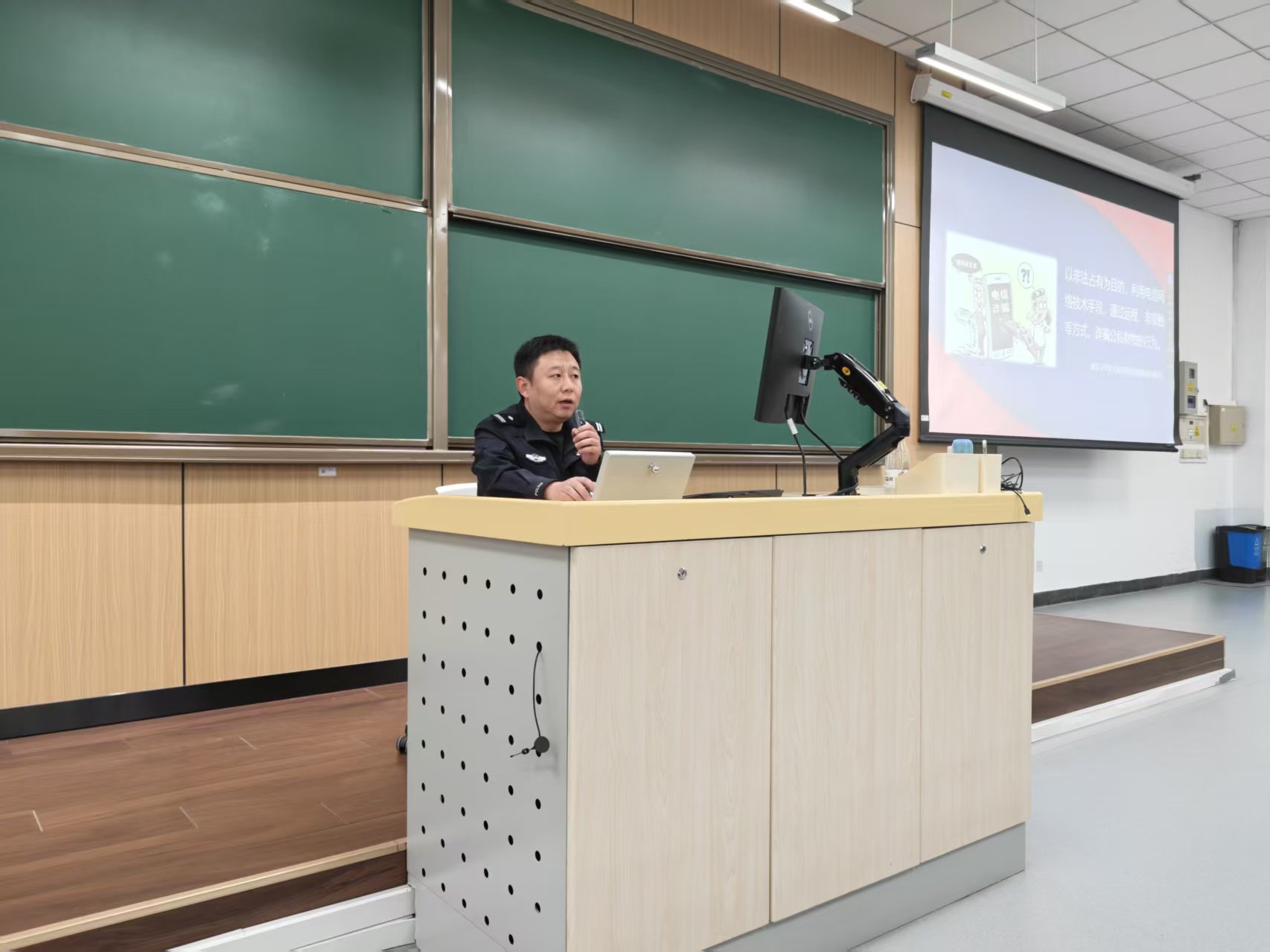 (通讯员 陈贝)为有效提升校园反诈工作的精准性与实效性,切实守护师生的生命财产安全,4月1日上午10时,传源书院邀请花园路派出所副所长李博洋走进学院路校区主M102教室,举办“防范电信网络诈骗--织密防护网,守好钱袋子”主题宣讲活动。书院执行院长郭伟丰主持活动,185名学生现场聆听。