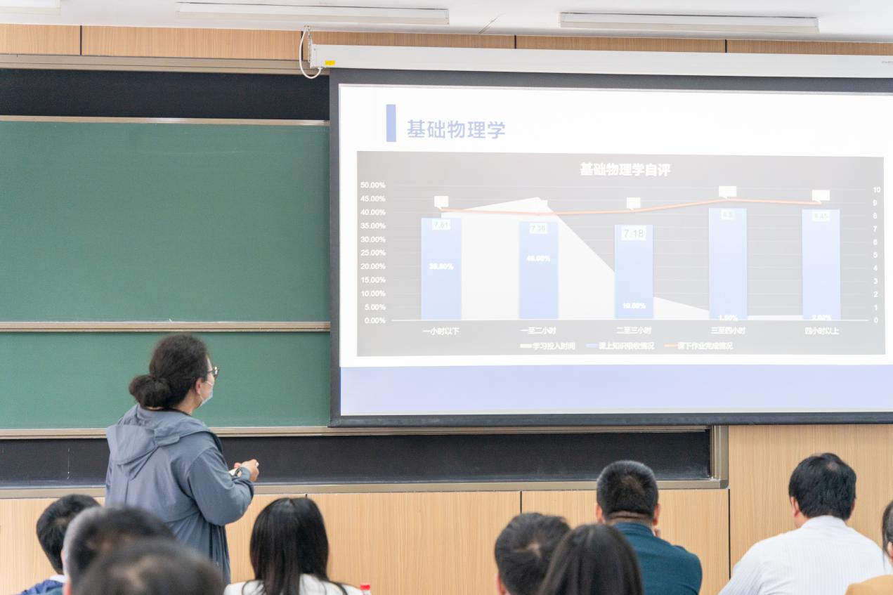 会议伊始就两书院春季学期学情调研数据进行了分享和汇报,学生对本学期学习情况、较上学期改善情况、各科投入时间和各科困难进行了自评。