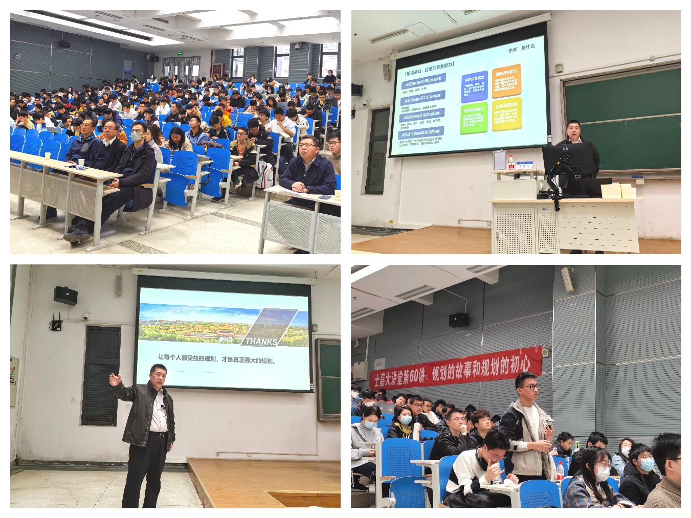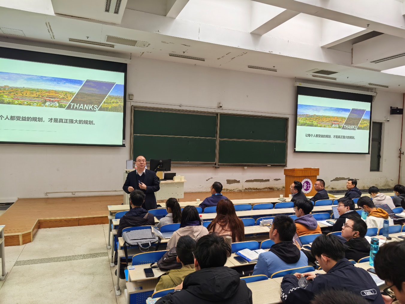 石晓冬院长从“尺度和视界”为大家解读 “规划”的内涵,让大家明白什么是新时代背景下的规划。他指出,规划需要科学地统筹山、水、林、田、城、人、岗、地、房、钱,在超大城市里,要科学地统筹好这些要素,规划起到龙头和引领作用。规划不仅涉及政策,也涉及居民的方方面面,包括政策制定、参与城市、改造城市、维护城市、建设城市等诸多方面。为帮助大家进一步了解规划的工作内容,石晓冬院长采用非线性结构的特殊叙事方式,详细讲述了四位规划师的成长历程。他们走进基层担当起自下而上社区行动的责任,他们利用现代科技绘制出方便每个人的规划蓝图,他们利用国际规划思维勾连起世界人民的文化交流,这些鲜活的案例让同学们看到了一个个伟大、富有创新活力的规划者。接着,石晓冬院长为大家展示了国土空间规划背景下的北京城市总体规划,让同学们了解了国土空间规划的工作内容。最后,石晓冬院长讲述了他从事规划工作的初心。他谈到,规划者不仅是天然的生态主义者、大地工作者更是社会主义者。规划治理中要坚持最初一公里的个体到群体的集中规划,才能在最后一公里达成群体到个体的具体化实施。只有每个人都因规划而受益,规划才是真正强大。